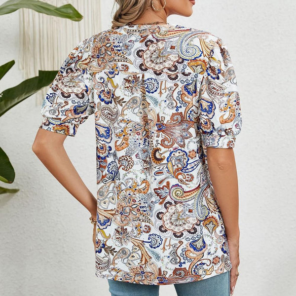 Women V-neck Loose Short-sleeved Printed T-shirt Top, Size: S(Orange Cashew)
