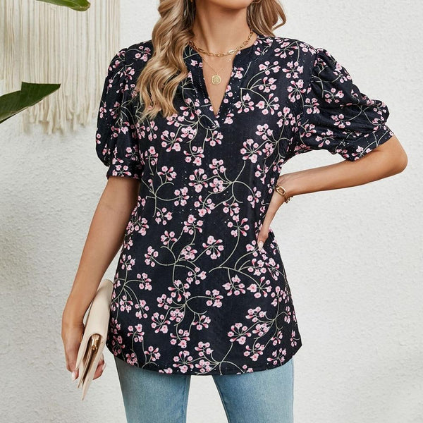 Women V-neck Loose Short-sleeved Printed T-shirt Top, Size: XL(Cherry Blossom)