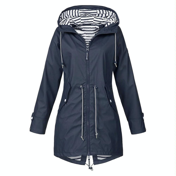 Women Waterproof Rain Jacket Hooded Raincoat, Size:M(Navy Blue)