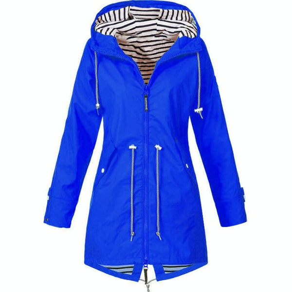 Women Waterproof Rain Jacket Hooded Raincoat, Size:XXL(Blue)