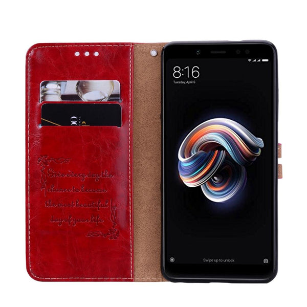 Business Style Oil Wax Texture Horizontal Flip Leather Case for Xiaomi Redmi Note 5 Pro, with Holder & Card Slots & Wallet (Red)