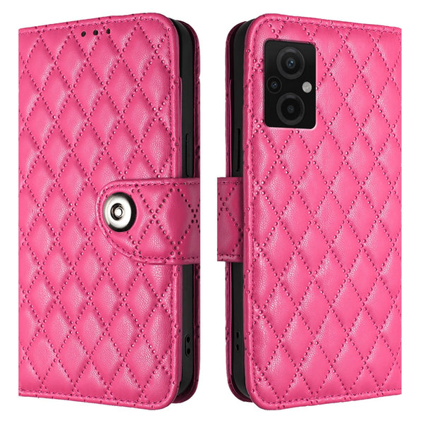 For Redmi 11 Prime 5G / Redmi 10 5G Rhombic Texture Flip Leather Phone Case with Lanyard(Rose Red)