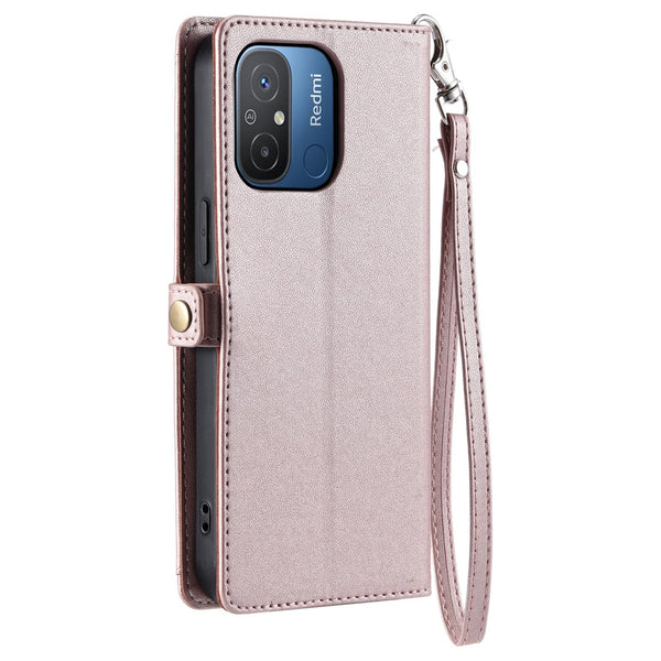 For Redmi 11A 4G Global Wallet Multi-card Slot Leather Phone Case with Lanyard(Rose Gold)