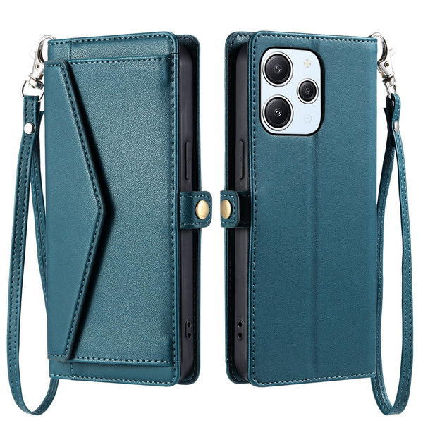 For Redmi 12 5G / 12 4G Wallet Multi-card Slot Leather Phone Case with Lanyard(Green)