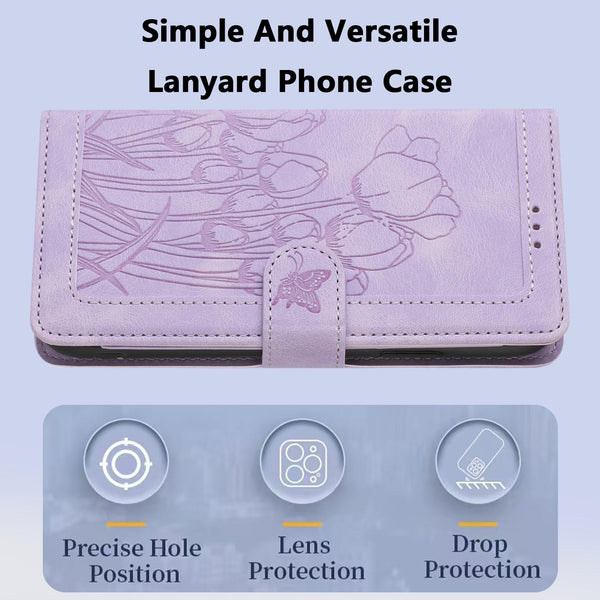 For Redmi 13C 4G / 5G Tulips Embossed Leather Phone Case with Lanyard(Purple)