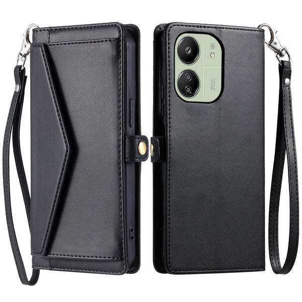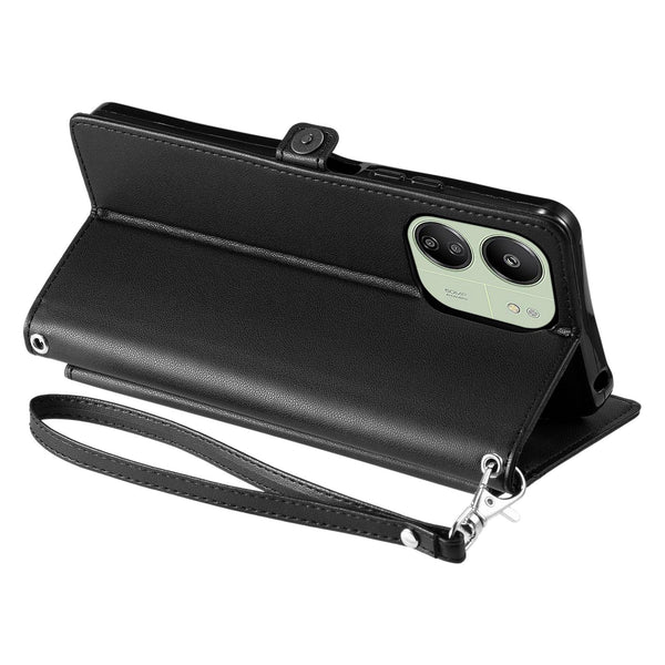For Redmi 13C 4G / 5G Wallet Multi-card Slot Leather Phone Case with Lanyard(Black)