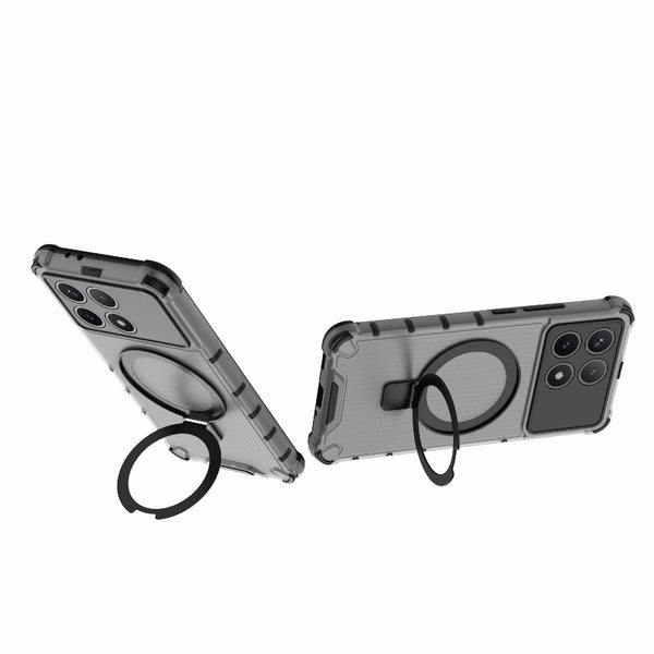 For Redmi K70 5G Grating Holder Shockproof Phone Case(Transparent Black)