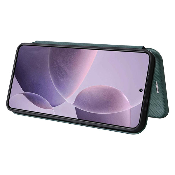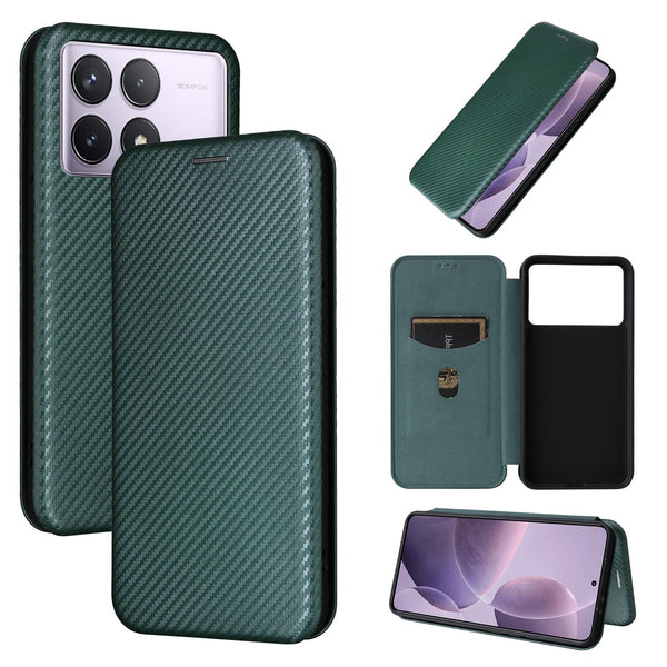 For Redmi K70 Carbon Fiber Texture Flip Leather Phone Case(Green)