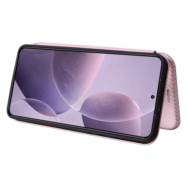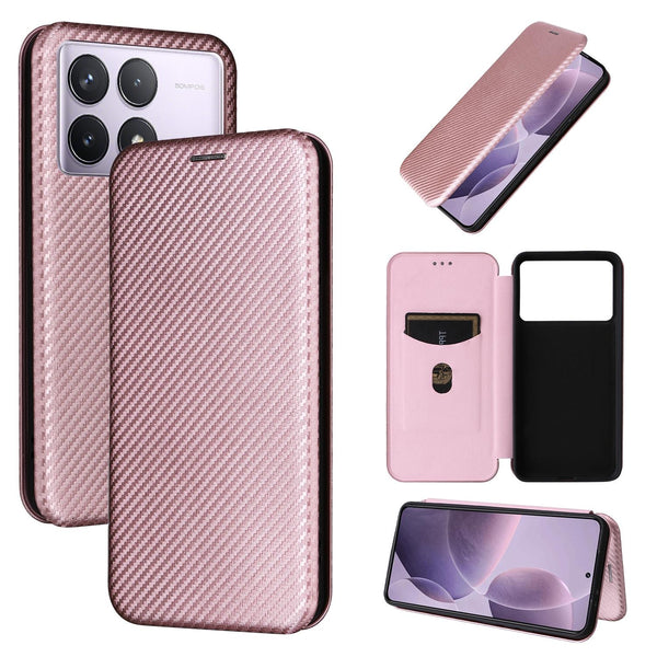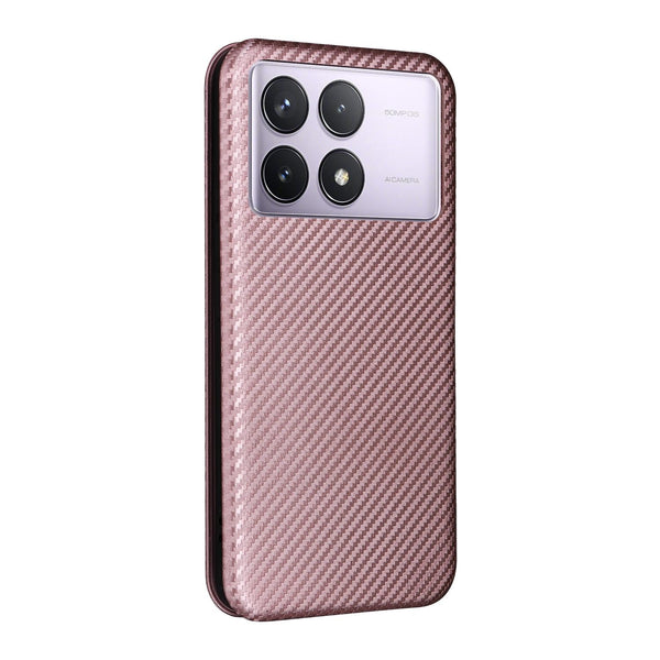 For Redmi K70 Carbon Fiber Texture Flip Leather Phone Case(Pink)