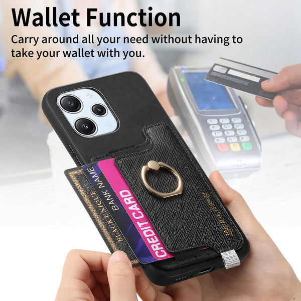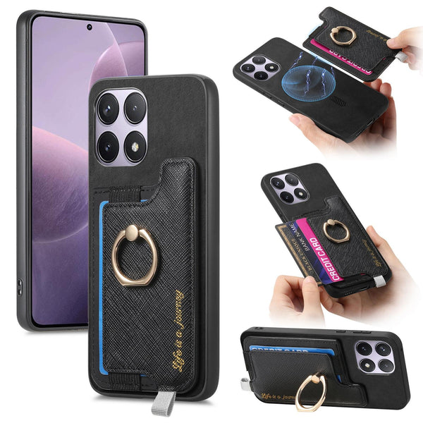 For Redmi K70 / K70 Pro 5G Retro Magsafe Cross Leather Ring Holder Card Bag Phone Case(Black)