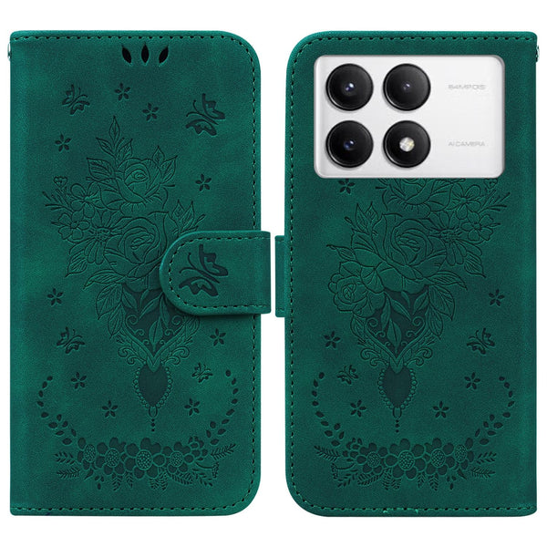 For Redmi K70 / K70 Pro Butterfly Rose Embossed Leather Phone Case(Green)