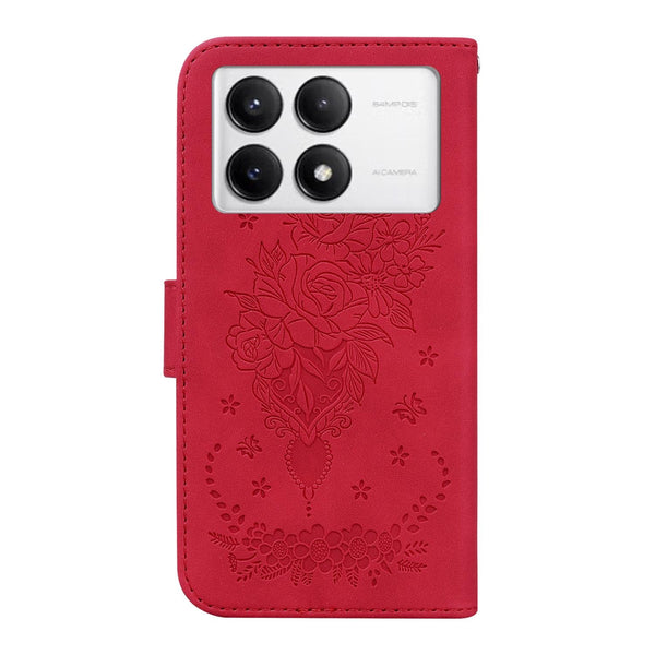 For Redmi K70 / K70 Pro Butterfly Rose Embossed Leather Phone Case(Red)