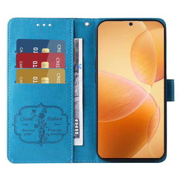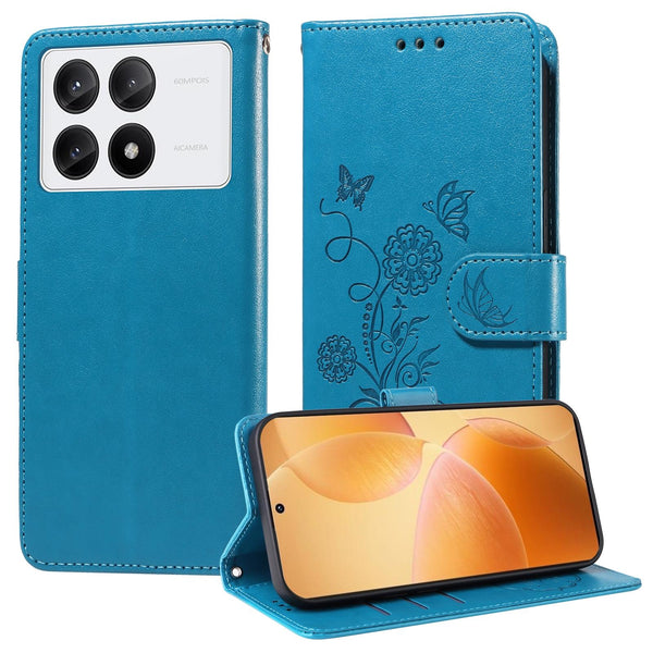 For Redmi K70 / K70 Pro Embossed Butterfly Flowers Leather Phone Case(Blue)