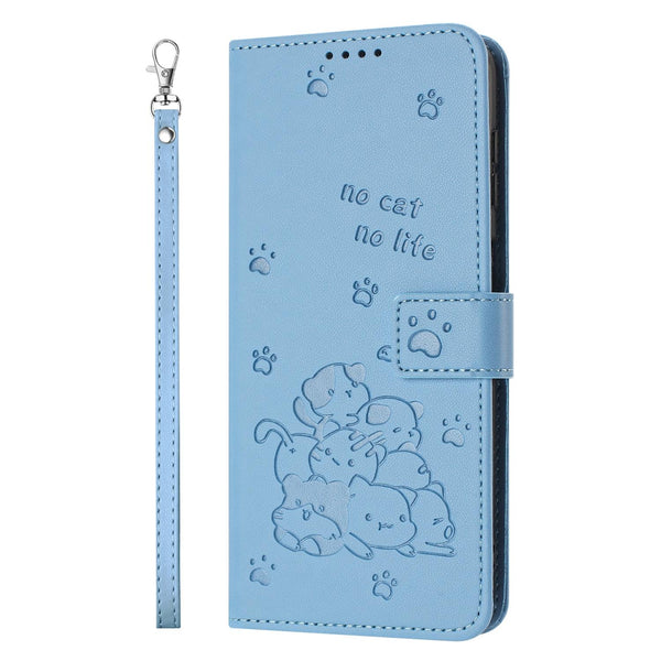 For Redmi K70 / K70 Pro Embossed Kitten Phone Leather Case with Lanyard(Blue)