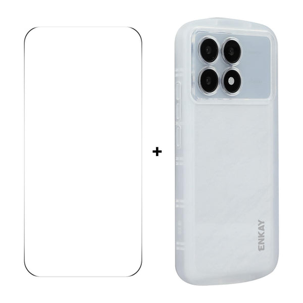 For Redmi K70 / K70 Pro ENKAY Hat-Prince Translucent Matte TPU Phone Case + 9H Big Arc Edge Glass Film(White)