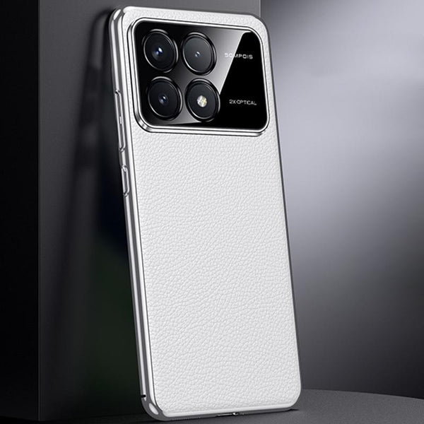 For Redmi K70 / K70 Pro First Layer Cowhide Leather Electroplated PC Phone Case(White)