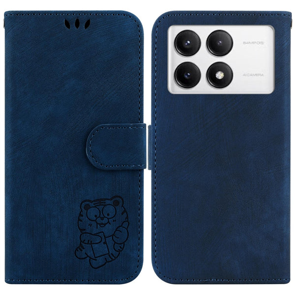 For Redmi K70 / K70 Pro Little Tiger Embossed Leather Phone Case(Dark Blue)