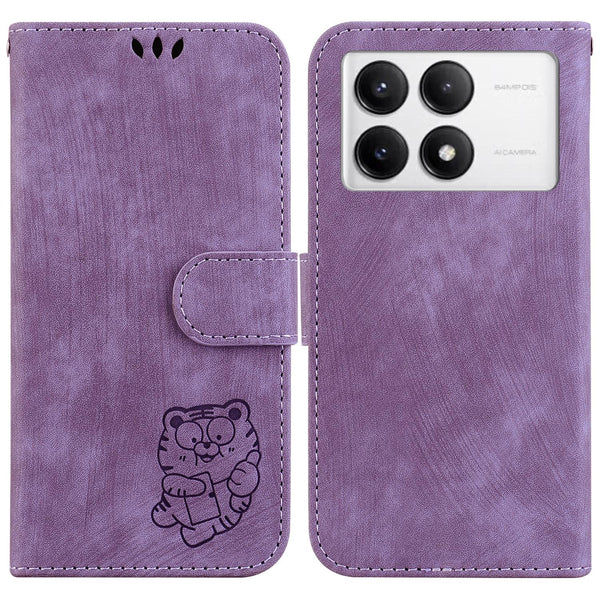 For Redmi K70 / K70 Pro Little Tiger Embossed Leather Phone Case(Purple)