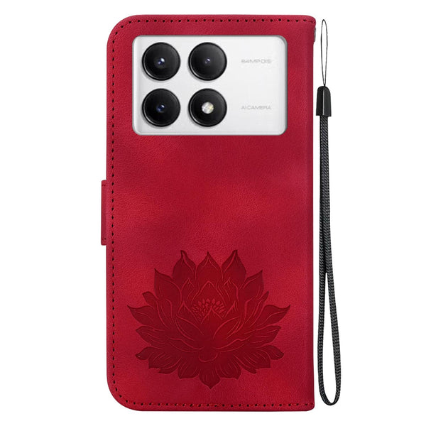 For Redmi K70 / K70 Pro Lotus Embossed Leather Phone Case(Red)