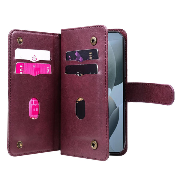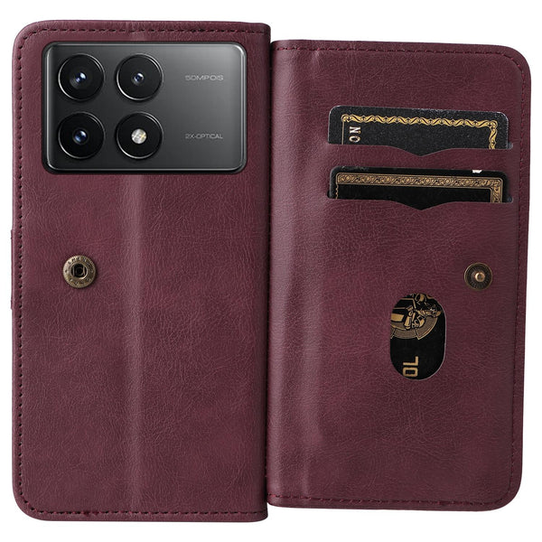 For Redmi K70 Multi-Function Wallet 10 Card Slots Leather Phone Case(Claret)