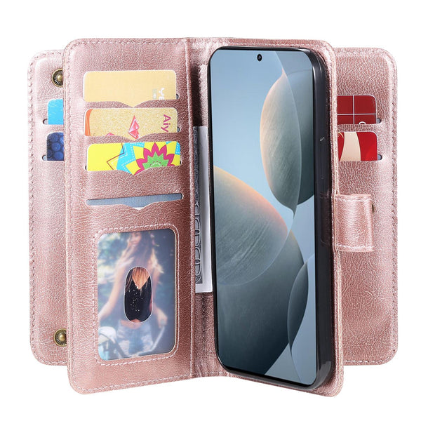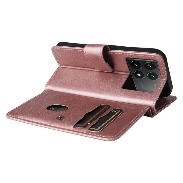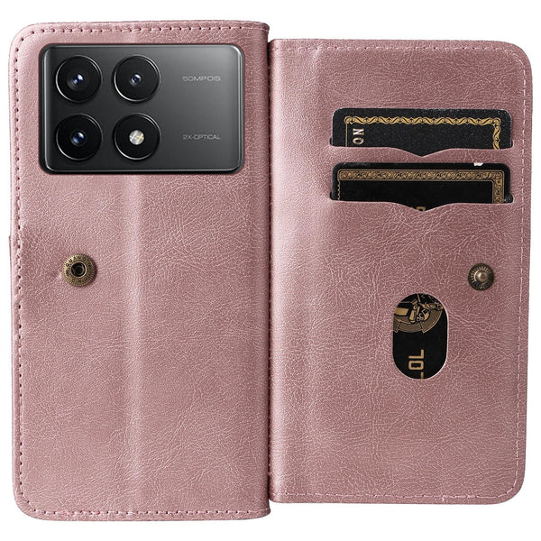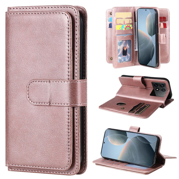 For Redmi K70 Multi-Function Wallet 10 Card Slots Leather Phone Case(Rose Gold)