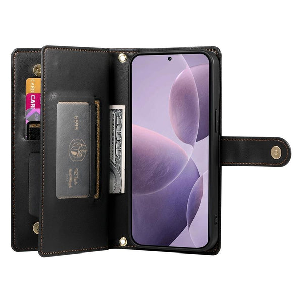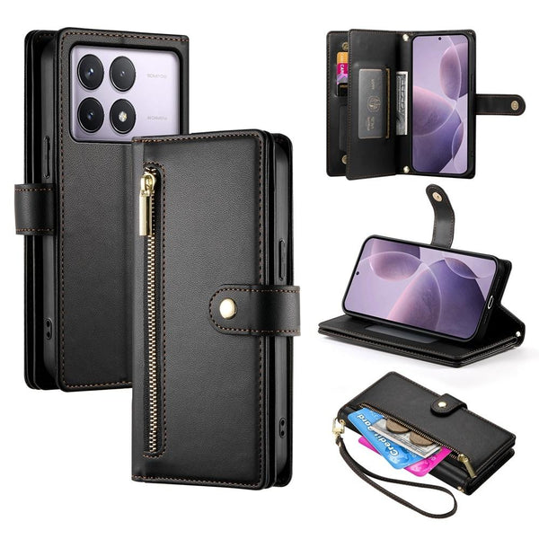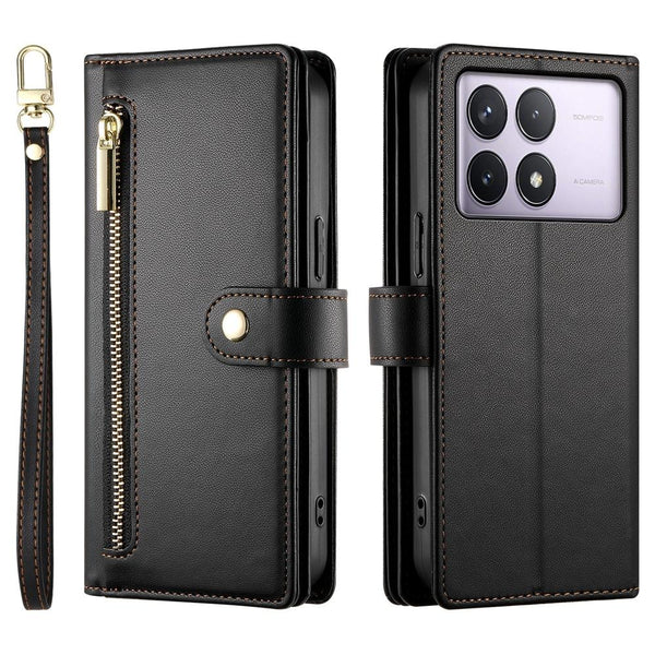For Redmi K70 Nine Card-slot Zipper Wallet Bag Leather Phone Case(Black)