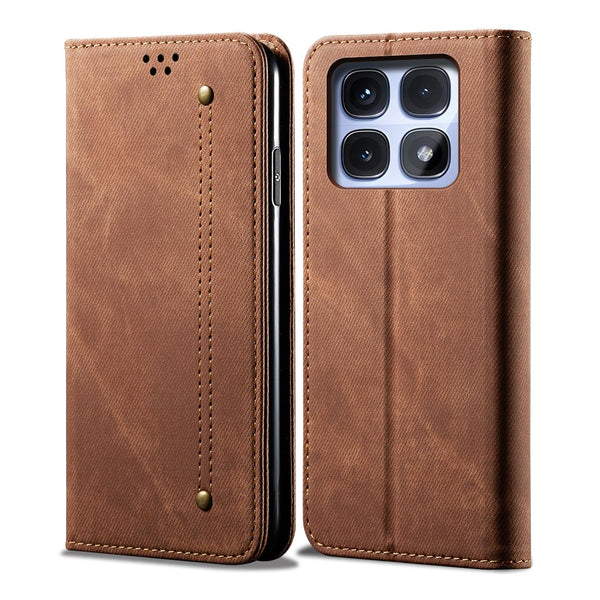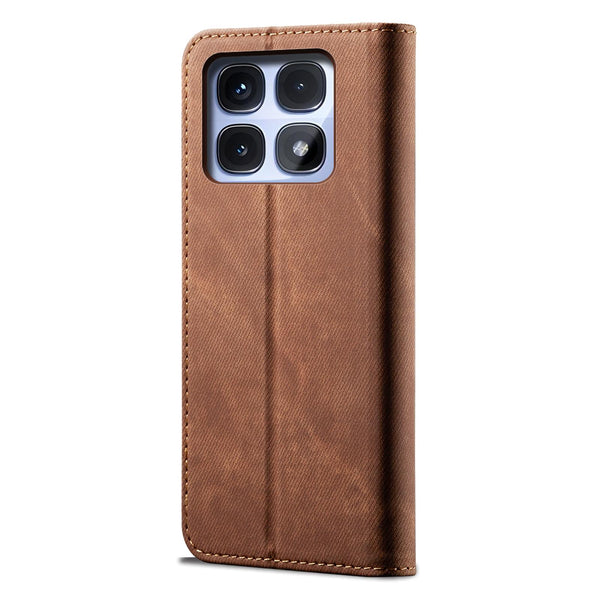 For Redmi K70 Ultra 5G Denim Texture Casual Style Horizontal Flip Leather Case(Brown)
