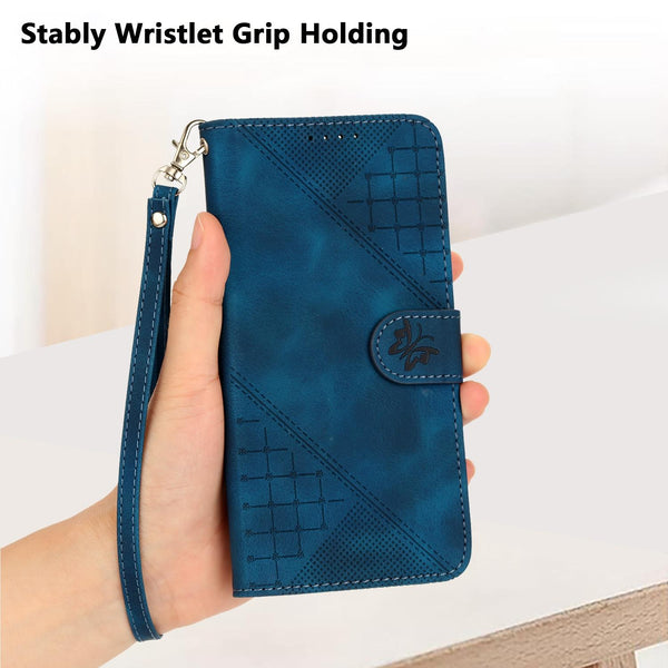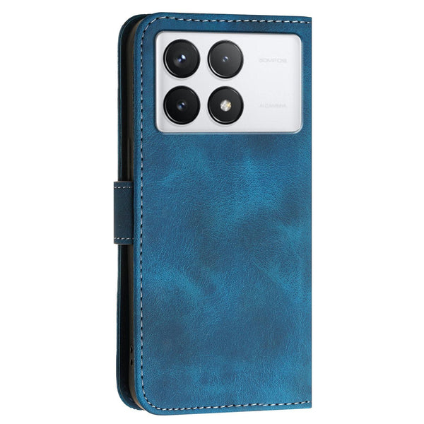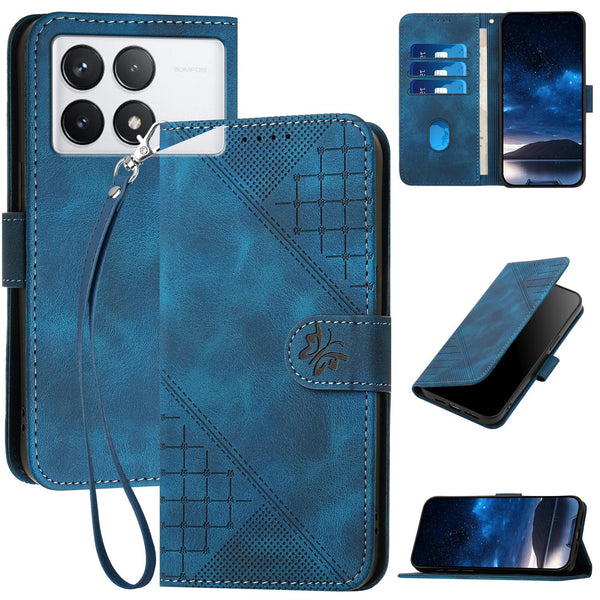 For Redmi K70 YX0080 Grid Butterfly Embossed Pattern Flip Leather Phone Case with Lanyard(Dark Blue)