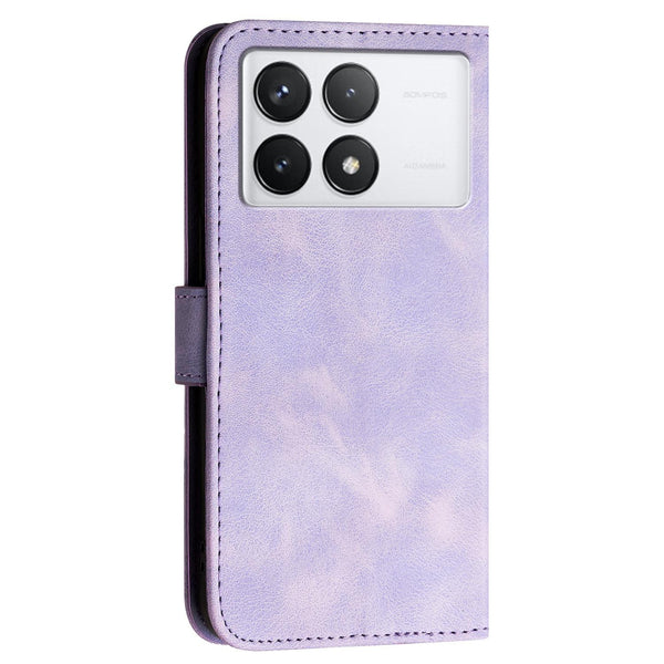 For Redmi K70 YX0080 Grid Butterfly Embossed Pattern Flip Leather Phone Case with Lanyard(Light Purple)