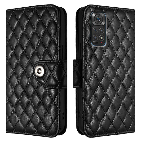 For Redmi Note 11S 5G Rhombic Texture Flip Leather Phone Case with Lanyard(Black)