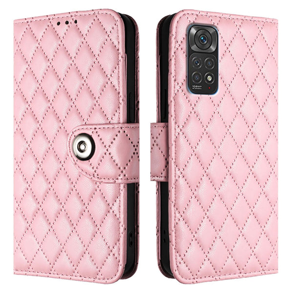 For Redmi Note 11S 5G Rhombic Texture Flip Leather Phone Case with Lanyard(Pink)