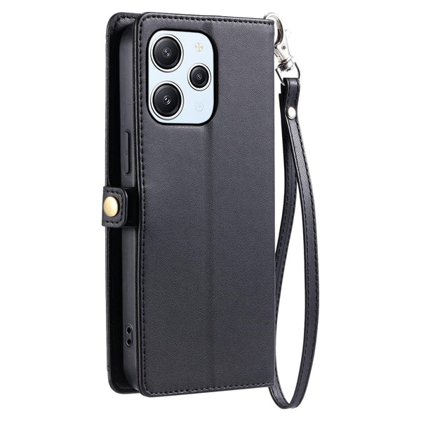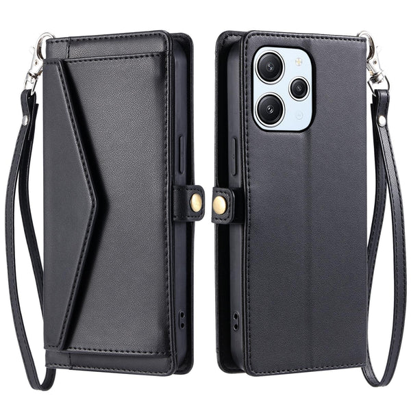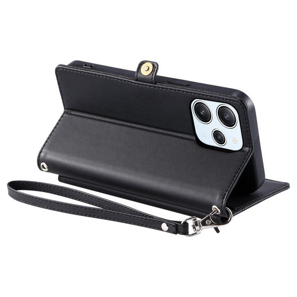 For Redmi Note 12R Wallet Multi-card Slot Leather Phone Case with Lanyard(Black)