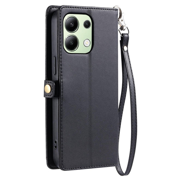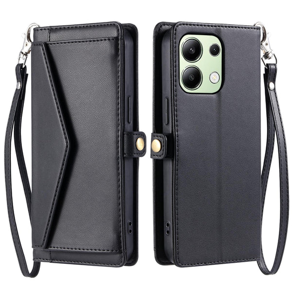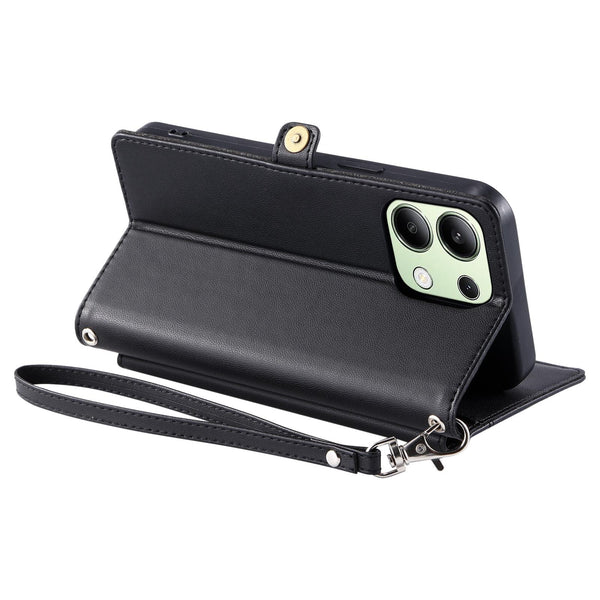 For Redmi Note 13 4G Global Wallet Multi-card Slot Leather Phone Case with Lanyard(Black)