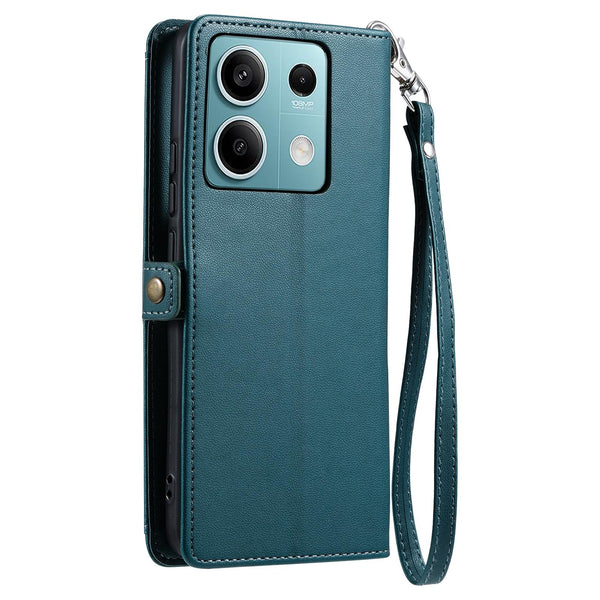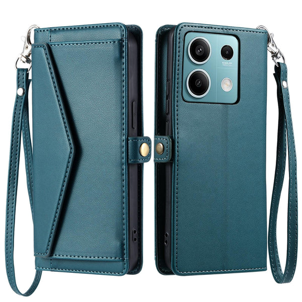 For Redmi Note 13 5G Global Wallet Multi-card Slot Leather Phone Case with Lanyard(Green)