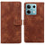 For Redmi Note 13 5G Lace Floral Embossed Magnetic Buckle PU Phone Case With Wrist Strap(Brown)