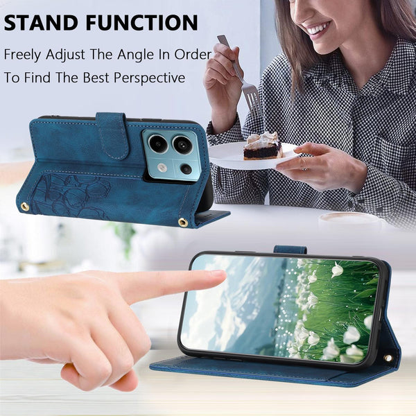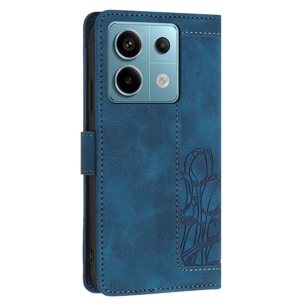 For Redmi Note 13 5G Tulips Embossed Leather Phone Case with Lanyard(Blue)
