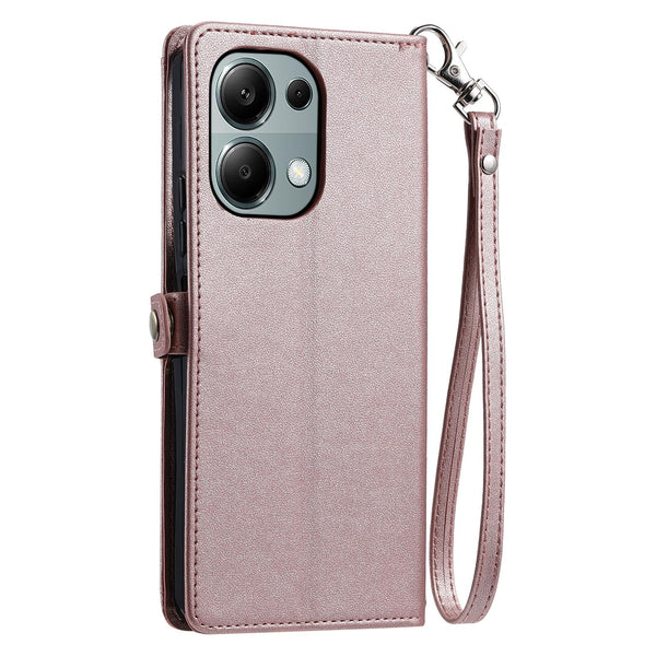 For Redmi Note 13 Pro 4G Global Wallet Multi-card Slot Leather Phone Case with Lanyard(Rose Gold)