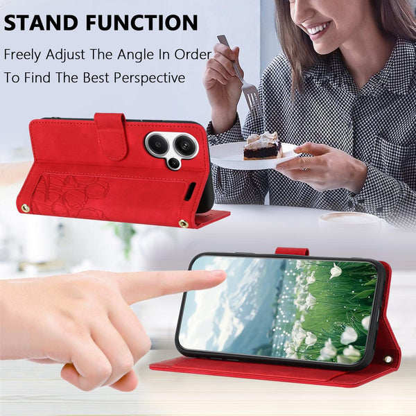 For Redmi Note 13 Pro+ 5G Tulips Embossed Leather Phone Case with Lanyard(Red)