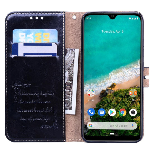 For Xiaomi Mi A3 Business Style Oil Wax Texture Horizontal Flip Leather Case, with Holder & Card Slots & Wallet(Black)
