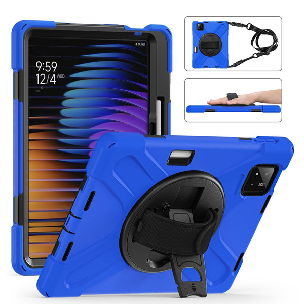 For Xiaomi Pad 7 / 7 Pro Rotatable Holder Silicone Hybrid PC Tablet Case with Shoulder Strap(Blue)
