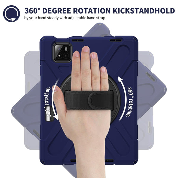 For Xiaomi Pad 7 / 7 Pro Rotatable Holder Silicone Hybrid PC Tablet Case with Shoulder Strap(Navy Blue)
