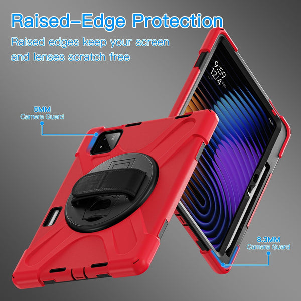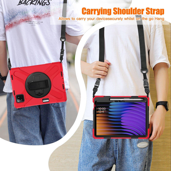 For Xiaomi Pad 7 / 7 Pro Rotatable Holder Silicone Hybrid PC Tablet Case with Shoulder Strap(Red)