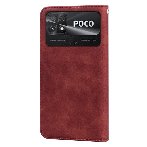 For Xiaomi Poco C40 Frosted Business Magnetic Horizontal Flip PU Phone Case(Brown)