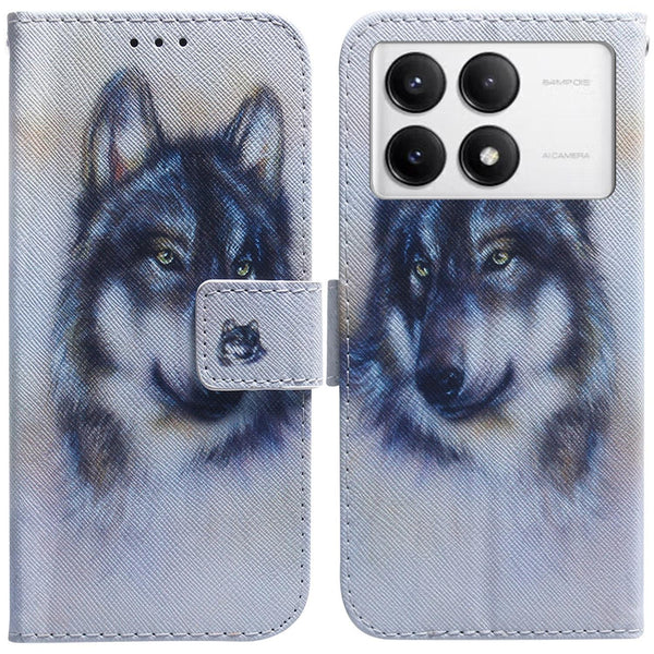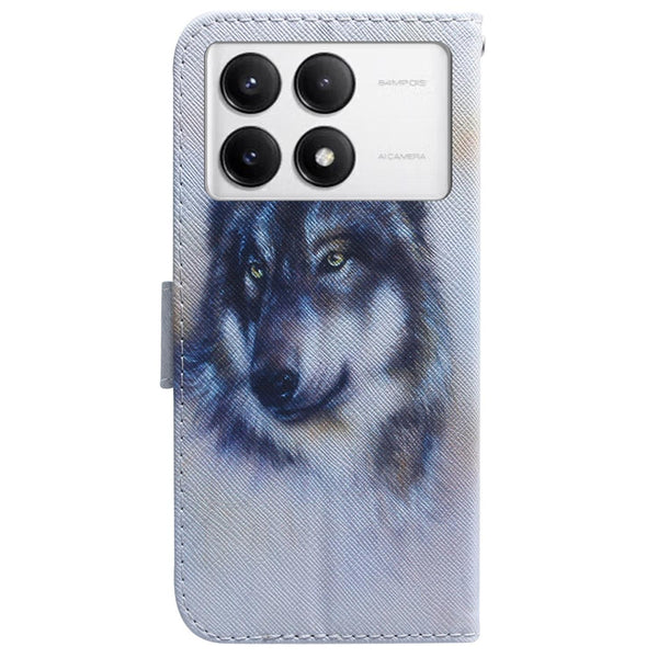 For Xiaomi Poco F6 Pro Coloured Drawing Flip Leather Phone Case(White Wolf)