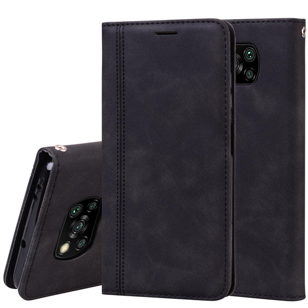 For Xiaomi Poco X3 NFC Frosted Business Magnetic Horizontal Flip PU Leather Case with Holder & Card Slot & Lanyard(Black)