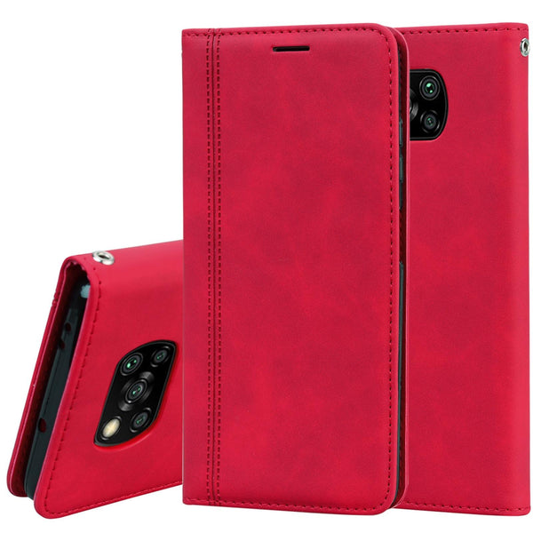 For Xiaomi Poco X3 NFC Frosted Business Magnetic Horizontal Flip PU Leather Case with Holder & Card Slot & Lanyard(Red)