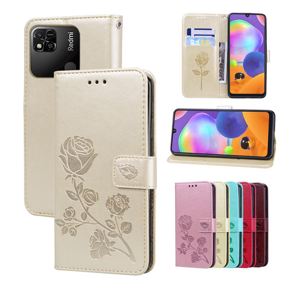 For Xiaomi Redmi 10A 4G Rose Embossed Flip PU Leather Phone Case(Gold)