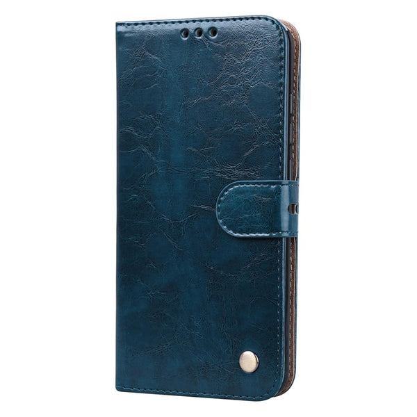 For Xiaomi Redmi 8 Business Style Oil Wax Texture Horizontal Flip Leather Case, with Holder & Card Slots & Wallet(Blue)