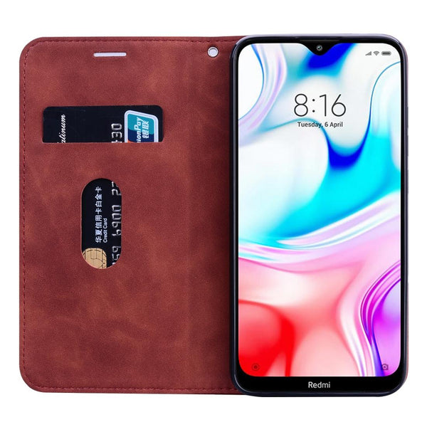 For Xiaomi Redmi 8 Frosted Business Magnetic Horizontal Flip PU Leather Case with Holder & Card Slot & Lanyard(Brown)