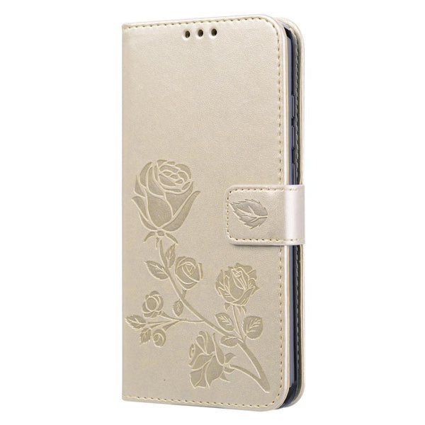 For Xiaomi Redmi 8 Rose Embossed Horizontal Flip PU Leather Case, with Holder & Card Slots & Wallet(Gold)